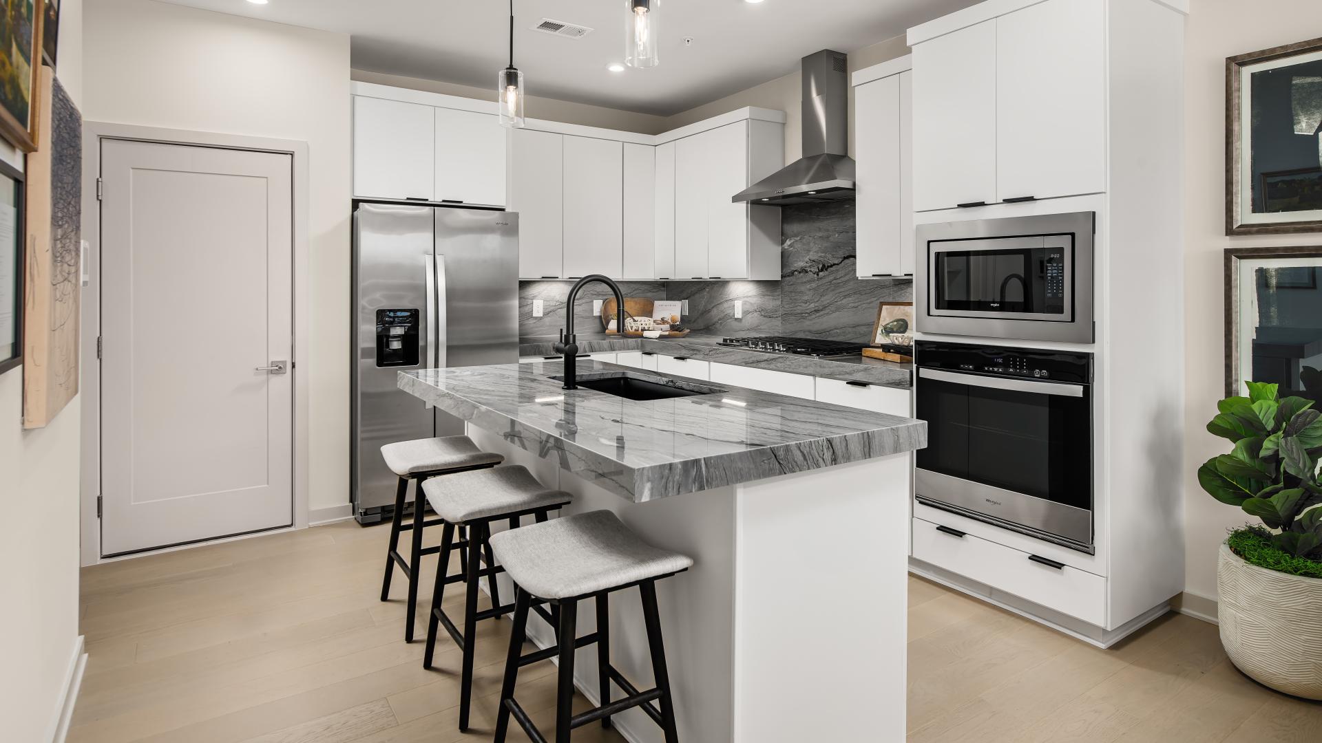 Located within walking distance of the Ashburn Metro Station, Metro Walk at Moorefield Station - Lofts Collection is a community of new condos in Ashburn, VA, with luxury finishes and access to onsite amenities as well as nearby shopping and dining.